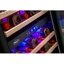 Кнопки для управления подсветкой выносятся на панель управления. Лампы синего, белого или голубого цветов могут располагаться в верхней части камеры или на боковых сторонах. Дополнительное освещение может устанавливаться в винных холодильниках с зоной для сервировки: она обеспечивает лучший обзор и доступ при подготовке вина к подаче.