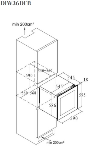 Некоторые отдельно стоящие винные шкафы, а также модели, встраиваемые в мебельную колонну, шкаф или другое закрытое пространство, оснащаются системой забора воздуха и вентиляционной решеткой, расположенными спереди в нижней части корпуса. Зазоры между корпусом шкафа и стенками мебели необходимы и в этом случае.