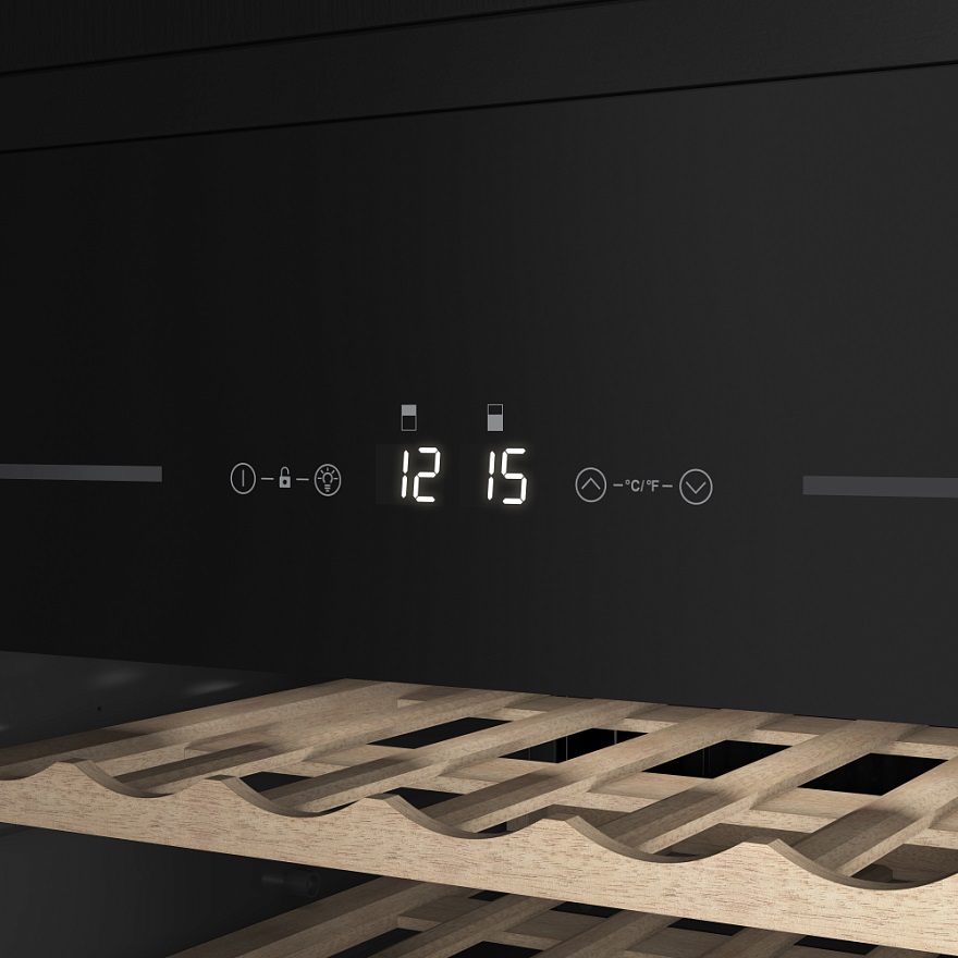 Большинство современных винных шкафов имеет электронное управление, они могут оснащаться обычными цифровыми дисплеями, на которых будет отображаться минимум информации — о включении, температуре в камере и возникших неисправностях. Однако в большинстве моделей используются текстовые сенсорные дисплеи из нескольких сегментов. С помощью кнопок сенсорного меню на этих дисплеях можно отображать и регулировать температуру в каждой зоне отдельно с точностью до градуса, выбирать уровень влажности, задавать дополнительные опции — отключение сигнализации, включение вентиляции и внутреннего освещения, активацию защиты от детей, тип отображения температуры ºF/ºC. Здесь же будут появляться коды ошибок, выданные системой обнаружения неисправностей.