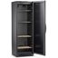 Глухая дверь без стекла надежно защищает вино от влияния ультрафиолетовых лучей, которые проникают, если шкаф находится в солнечной комнате. Это гарантирует также герметичное хранение. Цвет корпуса — черный. Дверь можно перевесить на другую сторону, поэтому вариантов размещения его в доме становится больше.