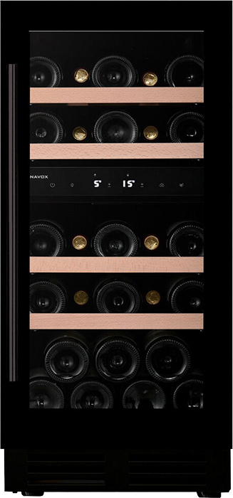Винный холодильник Dunavox DAUF-32.78DMB имеет две температурные зоны, в которых одновременно можно хранить разные сорта алкоголя и выставлять разные сочетания настроек. Он встраивается в нишу, что удобно, если у вас ограничен метраж помещения. Благодаря компактным размерам данная модель — отличный выбор для офиса, гостиничного номера. Количество бутылок, которое можно разместить с учетом полной комплектации и из расчета объема бутылки 0,75 л, — 32 шт.
