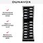 Dunavox DX-119.386DSS — винный шкаф с двумя зонами охлаждения, в каждой из которых температура регулируется. Может быть использован как встраиваемый и как отдельностоящий. Вмещает 119 стандартных бутылок объемом 0.75 л. В двери имеется замок. Компрессорный тип охлаждения.
