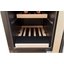 Дверца у большинства винных шкафов изготавливается из многослойного тонированного стекла. Такой материал, с одной стороны, позволяет оценивать коллекцию вин визуально, не открывая дверцу, в условиях стабильной температуры и влажности. С другой стороны, затемненное стекло с УФ-фильтром в виде напыления или специальной пленки надежно изолирует винные бутылки негативного воздействия ультрафиолетового излучения. Несколько слоев стекла обеспечивают при этом дополнительную защиту. Очень часто стекло в дверце заключается в рамку из дерева или металла. Натуральный или окрашенный металл или дерево не только способствуют прочности конструкции, но и превращают винный холодильник, особенно отдельно стоящий, в эффектный элемент обстановки.