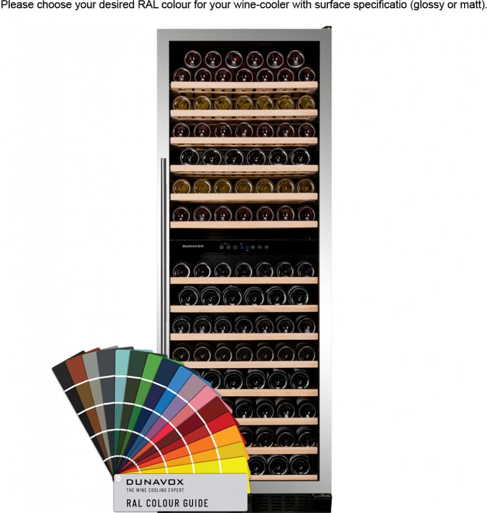 Винный холодильник Dunavox DX-181.490DCK имеет две температурные зоны, в которых одновременно можно хранить разные сорта алкоголя и выставлять разные сочетания настроек. Он устанавливается отдельно, что удобно, если у вас есть специальное помещение — кладовая, погреб и т.д. Количество бутылок, которое можно разместить с учетом полной комплектации и из расчета объема бутылки 0,75 л, — 181 шт.