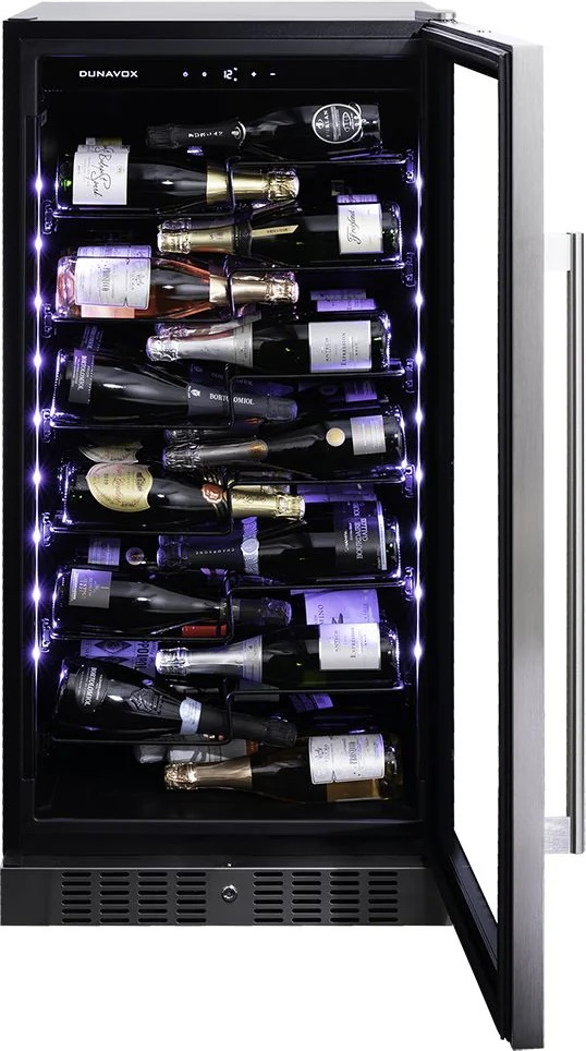 Стеклянная дверца винного шкафа — опция, которая решает сразу несколько задач. Прежде всего, она обеспечивает хороший обзор, позволяет контролировать коллекцию и демонстрировать ее, не открывая дверцу и не нарушая температурный режим. Стекло не только позволяет изолировать вино от наружного воздуха, но и не пропускает посторонние запахи. Прямые солнечные лучи также отрицательно влияют на качество вина, вызывая окисление танина — соединения, которое в нем содержится, и напиток становится горьким. Стеклянные дверцы снабжаются фильтрами или покрытием, защищающим бутылки по ультрафиолета. Способы защиты могут быть самыми разными — от наклеенной пленки до специального напыления. Иногда в дверцу устанавливается зеркальное стекло, в других случаях на него наносят тонировку в технике шелкографии.
