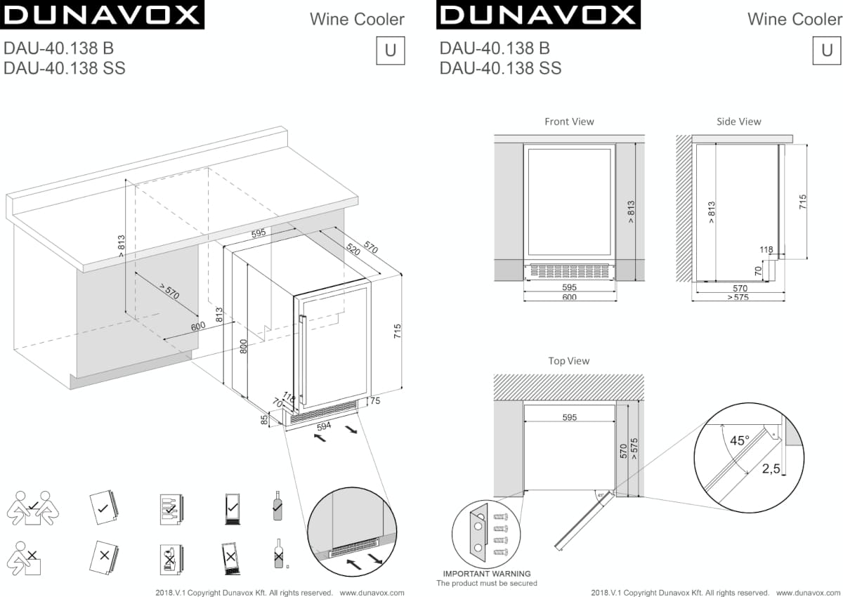 Возможность перенавешивания двери значительно расширяет возможности размещения винного шкафа Dunavox в помещении. В зависимости от расположения холодильника в вашем интерьере вы можете переместить петли на противоположную сторону при необходимости для удобства эксплуатации.