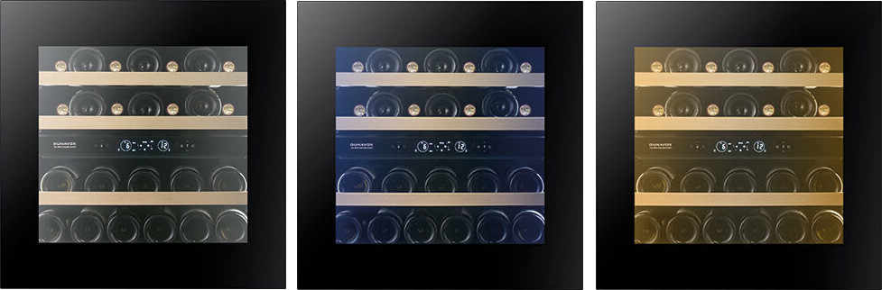 Кнопки для управления подсветкой выносятся на панель управления. Лампы синего, белого или голубого цветов могут располагаться в верхней части камеры или на боковых сторонах. Дополнительное освещение может устанавливаться в винных холодильниках с зоной для сервировки: она обеспечивает лучший обзор и доступ при подготовке вина к подаче.