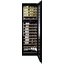 Выглядит как сдержанный и монолитный модуль серии HORIZON: высокий встроенный шкаф черного матового цвета с одной стеклянной дверью в стальной рамке. Три стеклопакета защищают содержимое от УФ, а панорамное стекло в сочетании с демонстрационной полкой и многотоновой подсветкой (белая, синяя, янтарная) создают презентабельную витрину бутылок. Дверной упор — справа, петли позволяют перенавесить дверь, а механизм доводчика и нажатие для открытия обеспечивают удобство доступа.