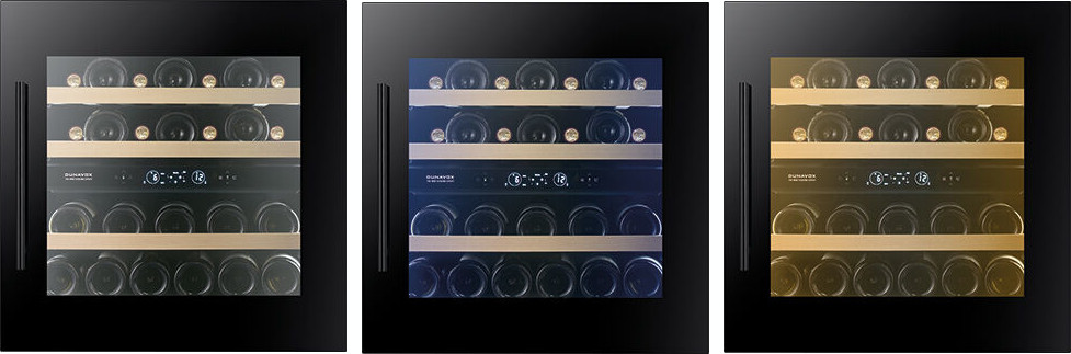 Стеклянная дверца винного шкафа — опция, которая решает сразу несколько задач. Прежде всего, она обеспечивает хороший обзор, позволяет контролировать коллекцию и демонстрировать ее, не открывая дверцу и не нарушая температурный режим. Стекло не только позволяет изолировать вино от наружного воздуха, но и не пропускает посторонние запахи. Прямые солнечные лучи также отрицательно влияют на качество вина, вызывая окисление танина — соединения, которое в нем содержится, и напиток становится горьким. Стеклянные дверцы снабжаются фильтрами или покрытием, защищающим бутылки по ультрафиолета. Способы защиты могут быть самыми разными — от наклеенной пленки до специального напыления. Иногда в дверцу устанавливается зеркальное стекло, в других случаях на него наносят тонировку в технике шелкографии.