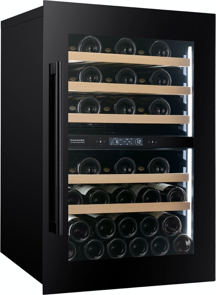 Винный холодильник Dunavox DVS-44.120DMB имеет две температурные зоны, в которых одновременно можно хранить разные сорта алкоголя и выставлять разные сочетания настроек. Он встраивается в нишу, что удобно, если у вас ограничен метраж помещения. Благодаря компактным размерам данная модель — отличный выбор для офиса, гостиничного номера. Количество бутылок, которое можно разместить с учетом полной комплектации и из расчета объема бутылки 0,75 л, — 44 шт.