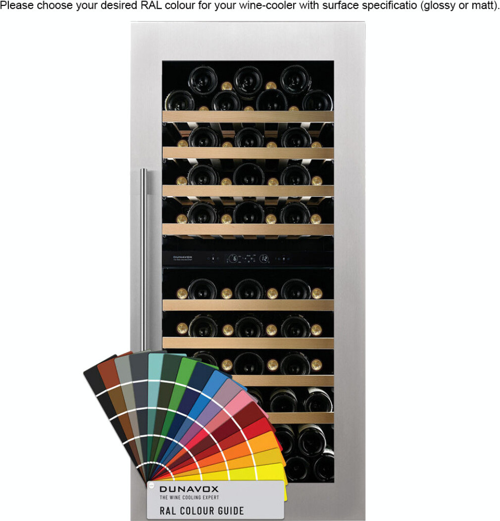 Всегда популярными остаются и универсальные цвета, особенно черный: белые корпуса винных шкафов можно найти в каталогах значительно реже. Черные корпуса могут изготавливаться как из металла, так и из дерева. Достаточно велик ассортимент винных холодильников в корпусах серого цвета и оттенка нержавеющей стали, которые сочетаются с любыми другими тонами и уместны а интерьерах как классического, так и современного стиля. Интересны изделия в корпусах «металлических» оттенков: серебряного, золотого, бронзового. Эффектно смотрятся модели, где детали золотого и бронзового цветов сочетаются с теплыми тонами натурального дерева.