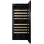Стеклянная дверь — дополнительный изящный штрих к общему дизайну модели. Специальное покрытие защищает вино от влияния ультрафиолетовых лучей, которые проникают, если шкаф находится в солнечной комнате. Хранение становится еще безопаснее и герметичнее благодаря нескольким слоям стекол. Цвет корпуса — черный матовый. Дверь можно перевесить на другую сторону, поэтому вариантов размещения его в доме становится больше.
