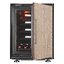 Дверца у большинства винных шкафов изготавливается из многослойного тонированного стекла. Такой материал, с одной стороны, позволяет оценивать коллекцию вин визуально, не открывая дверцу, в условиях стабильной температуры и влажности. С другой стороны, затемненное стекло с УФ-фильтром в виде напыления или специальной пленки надежно изолирует винные бутылки негативного воздействия ультрафиолетового излучения. Несколько слоев стекла обеспечивают при этом дополнительную защиту. Очень часто стекло в дверце заключается в рамку из дерева или металла. Натуральный или окрашенный металл или дерево не только способствуют прочности конструкции, но и превращают винный холодильник, особенно отдельно стоящий, в эффектный элемент обстановки.