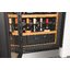 Дверца у большинства винных шкафов изготавливается из многослойного тонированного стекла. Такой материал, с одной стороны, позволяет оценивать коллекцию вин визуально, не открывая дверцу, в условиях стабильной температуры и влажности. С другой стороны, затемненное стекло с УФ-фильтром в виде напыления или специальной пленки надежно изолирует винные бутылки негативного воздействия ультрафиолетового излучения. Несколько слоев стекла обеспечивают при этом дополнительную защиту. Очень часто стекло в дверце заключается в рамку из дерева или металла. Натуральный или окрашенный металл или дерево не только способствуют прочности конструкции, но и превращают винный холодильник, особенно отдельно стоящий, в эффектный элемент обстановки.