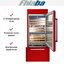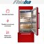 Глухая дверь без стекла надежно защищает вино от влияния ультрафиолетовых лучей, которые проникают, если шкаф находится в солнечной комнате. Это гарантирует также герметичное хранение. Цвет корпуса — красный.