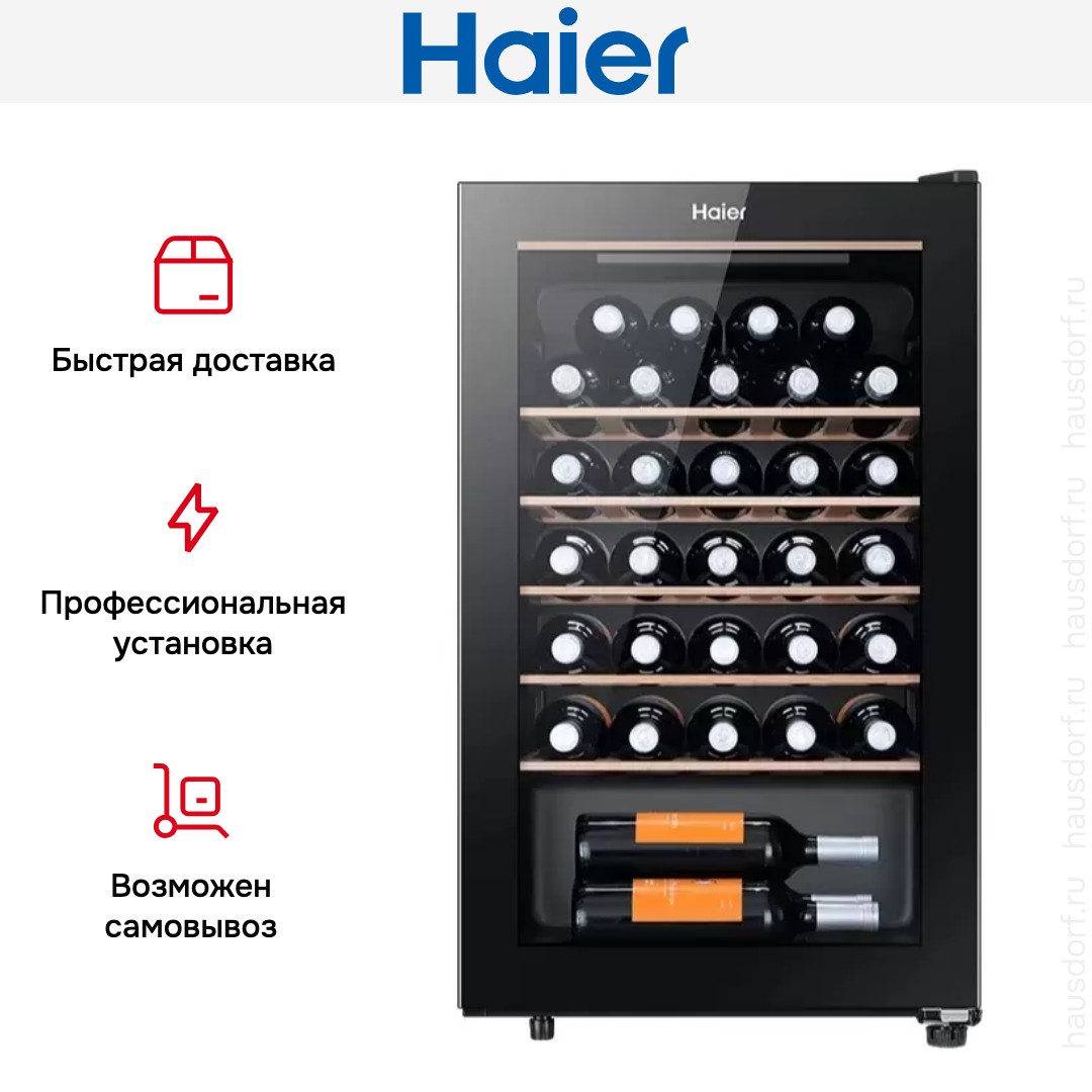 Винный шкаф Haier FWC33GA выполнен в строгом черном цвете и сразу привлекает внимание стеклянной дверцей со стеклопакетом и UV-защитой. Его компактные габариты 83×49.9×45.5 см позволяют вписать прибор в интерьер кухни, бара или небольшой гостиной. Матовая рамка и затемненное стекло придают прибору презентабельный вид и одновременно защищают коллекцию от вредного солнечного излучения. Правосторонний дверной упор делает открывание удобным в планировках с левосторонней столовой зоной. Внутренняя LED-подсветка мягко освещает полки и позволяет выбрать бутылку, не нарушая стабильность температуры.