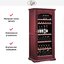 Электронное управление помогает быстро разобраться в том, как функционирует эта модель, и легко настроить все необходимые параметры. На дисплее отображаются данные, которые собирают датчики в камере. Цифровой термометр позволяет контролировать, соблюдаются ли оптимальные условия. Лампочки, расположенные внутри, хорошо подсвечивают бутылки. Всего полок, на которых можно разместить коллекцию, в шкафу 7 шт.