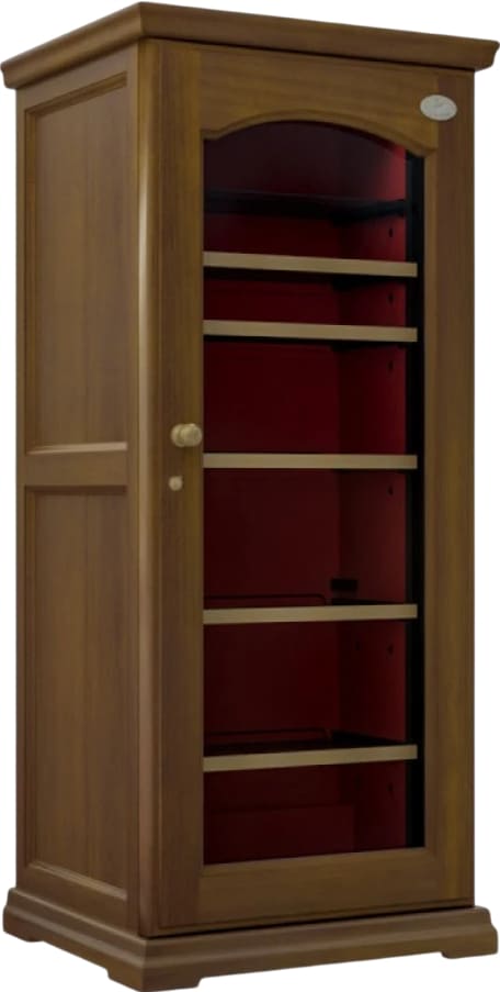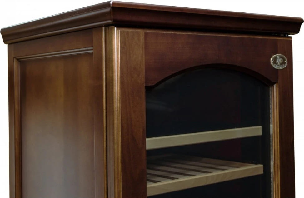 Винные шкафы — домашняя техника, относящаяся к средней и высокой ценовой категории. Разнообразие дизайна и расцветок позволяет подобрать модель для самых взыскательных покупателей. Отдельно стоящие модели в классическом стиле, с корпусами из натурального дерева с тонировкой или без нее отлично смотрятся и дома, и в офисах. Производители предлагают модели из различных пород дерева во всех оттенках коричневого цвета, от самых светлых до темных — орех, бук, дуб, венге, зебрано. Широко представлены модели в корпусах из красного дерева, в том числе интересных оттенков «red wine» и «red chery». В некоторых моделях сочетаются дерево и металл или два вида дерева — как, например «вишня/дуб» у шкафов IP.