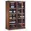 Реже выпускаются винные шкафы со сплошными дверцами из металла или дерева. «Глухая» дверь гарантирует гораздо лучшую сохранность коллекции, поскольку попадание солнечных лучей совершенно исключается. Кроме того, сплошная дверь способствует созданию единого стиля интерьера. Недостатком ее является та же непрозрачность: чтобы продемонстрировать коллекцию или отыскать ту или иную бутылку, дверцу приходится открыть.