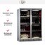 Производители предлагают винные шкафы, оснащенные одной, двумя, тремя и четырьмя камерами, которые могут располагаться как друг под другом, так бок и бок. Самые популярные — однокамерные модели, ассортимент которых особенно широк, но втором месте — двухкамерные. Над заметить, что количество камер не зависит напрямую от габаритов изделия: например, однокамерные модели увеличенных габаритов — далеко не редкость. Их высота может варьироваться в пределах от 14 см до 219 см, а ширина — от 13 см до 150 см.