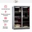 Ширина винного шкафа, как и другие их габариты, обязательно учитывается при выборе модели для домашнего или профессионального использования. Встраиваемые и отдельно стоящие модели выпускаются в самом широком ассортименте, так что разброс значений максимально велик. Неизменным спросом пользуются винные шкафы стандартной ширины — от 40 до 80 см, в современном и классическом стиле. Для встраиваемых шкафов наиболее удобной является ширина 60 см, позволяющая устанавливать их в кухонную тумбу или колонну. Вместимость их может быть самой различной и зависит в большей степени от высоты прибора. Маленькие винные шкафы с размещением на столешнице или даже с креплением к стене, рассчитанные на хранение от одной до десяти бутылок, могут иметь минимальную ширину от 13 см. На полках у них обычно помещается не более 5 бутылок, и используются они для охлаждения вина перед подачей. Большие винные шкафы с несколькими камерами и температурными зонами для длительного хранения и созревания разных сортов вина могут иметь ширину до 180 см, а максимальное значение этого параметра может составить 300 см. Как правило, это отдельно стоящие модели в деревянном корпусе с камерами side-by-side.