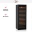 Вместимость составляет 165 бутылок типа бордо, которые располагаются горизонтально на пятнадцати полках. Они выполнены из дерева, что считается наиболее рациональным для такого вида прибора, отсутствует деформация и потеря внешнего вида. Винный шкаф подходит для хранения напитков, требующих одинаковых условий, т. к. имеет одну климатическую зону, в который температура может варьироваться от +5 до +18 градусов.