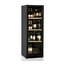 Светодиодное освещение имеет ряд плюсов: потребляет мало электроэнергии, служит гораздо дольше обычных ламп накаливания и не нагревает вина. Включить подсветку можно отдельной кнопкой, при демонстрации коллекции она создаст особую выигрышную атмосферу. Внутренняя вентиляция гарантирует равномерное распределение холода по всей камере. Стеклопакет обработан УФ защитой.