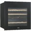 Встраиваемые холодильники для вина оснащаются специальной системой вентиляции: охлаждающая система у них находится в нижней части корпуса спереди. На такие устройства не навешивается мебельный фасад: дверца с затемненным стеклом остается на виду и открывается на достаточно широкий угол для свободного выдвижения деревянных полок.