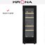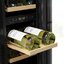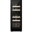 Стеклянная дверь — дополнительный изящный штрих к общему дизайну модели. Специальное покрытие защищает вино от влияния ультрафиолетовых лучей, которые проникают, если шкаф находится в солнечной комнате. Цвет корпуса — черный. Дверь можно перевесить на другую сторону, поэтому вариантов размещения его в доме становится больше.
