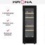 Электронное управление помогает быстро разобраться в том, как функционирует эта модель, и легко настроить все необходимые параметры. На дисплее отображаются данные, которые собирают датчики в камере. Лампочки, расположенные внутри, хорошо подсвечивают бутылки. Всего полок, на которых можно разместить коллекцию, в шкафу 4 шт.