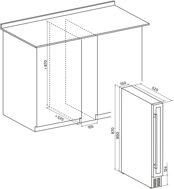 Высота встраиваемых винных шкафов может варьироваться примерно в таком же диапазоне. Стандартные размеры встраиваемых винных шкафов должна соответствовать габаритам мебели, так что высота их может быть несколько меньше, чем у отдельно стоящих моделей.