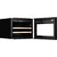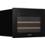 Эта встраиваемая модель выполнена в стиле High-Tech и выглядит современно и сдержанно. Корпус и рамка двери окрашены в черный цвет, что делает прибор органичным в интерьерных решениях от минимализма до лофта. Габариты 45.5×59×54.5 см позволяют установить шкаф в нишу 45×56×55 см, а компактная глубина делает монтаж удобным даже в плотной кухонной мебели. Дверь со стеклопакетом в черной рамке защищает содержимое и одновременно демонстрирует коллекцию без лишнего света.