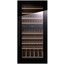 Стеклянная дверь — дополнительный изящный штрих к общему дизайну модели. Специальное покрытие защищает вино от влияния ультрафиолетовых лучей, которые проникают, если шкаф находится в солнечной комнате. Цвет корпуса — черный. Дверь можно перевесить на другую сторону, поэтому вариантов размещения его в доме становится больше.