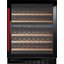 Фронт модели выполнен в черном стекле, ручка на двери при этом насыщенного красного цвета. Такой винный шкаф не только полезен на домашней кухне, но и добавляет интересных дизайнерских акцентов в интерьер.