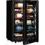 Производители предлагают винные шкафы, оснащенные одной, двумя, тремя и четырьмя камерами, которые могут располагаться как друг под другом, так бок и бок. Самые популярные — однокамерные модели, ассортимент которых особенно широк, но втором месте — двухкамерные. Над заметить, что количество камер не зависит напрямую от габаритов изделия: например, однокамерные модели увеличенных габаритов — далеко не редкость. Их высота может варьироваться в пределах от 14 см до 219 см, а ширина — от 13 см до 150 см.
