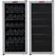 Стеклянная дверь — дополнительный изящный штрих к общему дизайну модели. Специальное покрытие защищает вино от влияния ультрафиолетовых лучей, которые проникают, если шкаф находится в солнечной комнате. Цвет корпуса — нержавеющая сталь/черный. Дверь можно перевесить на другую сторону, поэтому вариантов размещения его в доме становится больше.