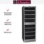 Современные винные шкафы всех типов, в том числе компрессорные, темоэлектрические и абсорбционные, оснащаются электронной системой управления — кнопочной или сенсорной. Панель управления, с помощью которой производится регулировка параметров работы, может размещаться внутри винного шкафа за дверцей или снаружи в верхней части корпуса. Второй вариант более удобен, поскольку для изменения параметров не нужно открывать дверцу. Кроме того, такое расположение панели управления позволяет поддерживать более стабильную температуру в камере. Однако для больших винных шкафов в классическом стиле из ценных пород дерева предпочтительнее скрытая панель управления, которая не портит их внешний вид.