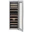 Большое встраиваемое устройство высотой 181,6 см и шириной 60 см позволит заложить на хранение до 83 бутылок объемом 0,75 литра. Модель относится к климатическому классу SN, допускающему использование при наружных температурах от +10°С до +32°С. Температура в камере может регулироваться в диапазоне от +5°C до +20°C. Внутреннее наполнение представляют 10 деревянных полок: 8 из них выкатываются на телескопических направляющих, а еще одна служит для демонстрации коллекции. Циркуляционное охлаждение поддерживает одинаковую температуру во всем объеме камеры. Светодиодная подсветка отличается плавным изменением яркости, в том числе во время включения. Для регулировки температуры служит сенсорная панель управления с ЖК-дисплеем с цифровой индикацией. Предусмотрена световая индикация повышения температуры в камере и прочих неисправностей, а также неплотной закрытой дверцы. Дверца TipOpen открывается нажатием, она оснащена доводчиком SoftSystem. Регулируемые по высоте ножки позволят выровнять устройство при встраивании. Панель управления можно заблокировать, чтобы не допустить изменения настроек. Модель отличает очень низкий уровень шума 34 дБ.