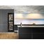 Встраиваемые холодильники для вина оснащаются специальной системой вентиляции: охлаждающая система у них находится в нижней части корпуса спереди. На такие устройства не навешивается мебельный фасад: дверца с затемненным стеклом остается на виду и открывается на достаточно широкий угол для свободного выдвижения деревянных полок.