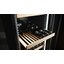 Интерьер организован для безопасного и удобного хранения: общий объем 358 литров рассчитан на 104 стандартные бутылки 0,75 л. Один холодный отсек разделён на три независимые зоны с регулировкой 5-20 °C, что позволяет одновременно хранить и созревать разные типы напитков. Одиннадцать полок из натурального дерева, восемь из которых выдвижные на телескопических направляющих, бережно фиксируют бутылки и упрощают загрузку. Демонстрационная полка под стеклом служит для экспозиции лучших пробников без нарушений микроклимата.