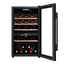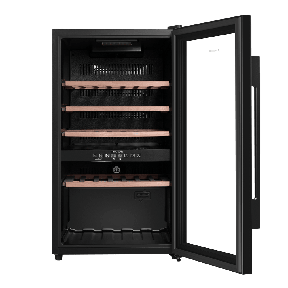 Аппарат оснащён двумя температурными зонами с диапазоном 5-22 °C, что даёт возможность одновременно хранить красные и белые вина при оптимальных условиях. Диапазон влажности 50-80% поддерживает пробки в хорошем состоянии, не допуская их пересыхания. Компрессорное охлаждение на базе стандартного компрессора обеспечивает стабильную работу, а хладагент R600a отличается эффективностью и низким уровнем воздействия на окружающую среду. Встроенный электронный термостат вместе с сенсорным управлением и цифровым дисплеем обеспечивает точную настройку параметров и быстрый контроль.