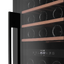 Современные винные шкафы всех типов, в том числе компрессорные, темоэлектрические и абсорбционные, оснащаются электронной системой управления — кнопочной или сенсорной. Панель управления, с помощью которой производится регулировка параметров работы, может размещаться внутри винного шкафа за дверцей или снаружи в верхней части корпуса. Второй вариант более удобен, поскольку для изменения параметров не нужно открывать дверцу. Кроме того, такое расположение панели управления позволяет поддерживать более стабильную температуру в камере. Однако для больших винных шкафов в классическом стиле из ценных пород дерева предпочтительнее скрытая панель управления, которая не портит их внешний вид.