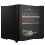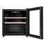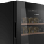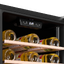 Стеклянная дверь — дополнительный изящный штрих к общему дизайну модели. Специальное покрытие защищает вино от влияния ультрафиолетовых лучей, которые проникают, если шкаф находится в солнечной комнате. Цвет корпуса — черный.