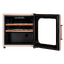 Стеклянная дверь — дополнительный изящный штрих к общему дизайну модели. Специальное покрытие защищает вино от влияния ультрафиолетовых лучей, которые проникают, если шкаф находится в солнечной комнате. Цвет корпуса — шампань.