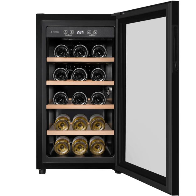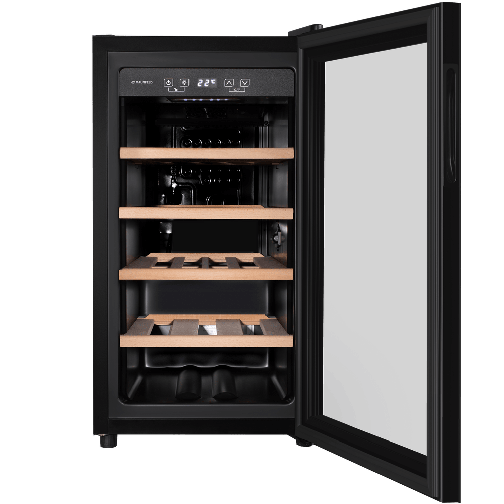 Винный холодильник Maunfeld MFWC-52S18 имеет одну температурную зону, в которой можно разместить бутылки и единовременно выставить только одну комбинацию настроек. Он устанавливается отдельно, что удобно, если у вас есть специальное помещение — кладовая, погреб и т.д. Благодаря компактным размерам данная модель — отличный выбор для офиса, гостиничного номера. Количество бутылок, которое можно разместить с учетом полной комплектации и из расчета объема бутылки 0,75 л, — 18 шт.