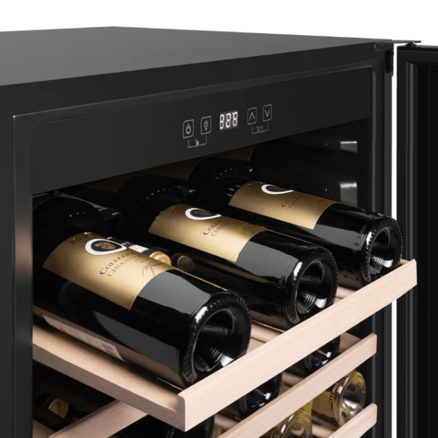 Большинство современных винных шкафов имеет электронное управление, они могут оснащаться обычными цифровыми дисплеями, на которых будет отображаться минимум информации — о включении, температуре в камере и возникших неисправностях. Однако в большинстве моделей используются текстовые сенсорные дисплеи из нескольких сегментов. С помощью кнопок сенсорного меню на этих дисплеях можно отображать и регулировать температуру в каждой зоне отдельно с точностью до градуса, выбирать уровень влажности, задавать дополнительные опции — отключение сигнализации, включение вентиляции и внутреннего освещения, активацию защиты от детей, тип отображения температуры ºF/ºC. Здесь же будут появляться коды ошибок, выданные системой обнаружения неисправностей.