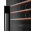 Электронное управление помогает быстро разобраться в том, как функционирует эта модель, и легко настроить все необходимые параметры. На дисплее отображаются данные, которые собирают датчики в камере. Лампочки, расположенные внутри, хорошо подсвечивают бутылки. Всего полок, на которых можно разместить коллекцию, в шкафу 14 шт. Пространство тщательно вентилируется, чтобы воздух не застаивался, не попадали посторонние запахи.
