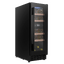 Прибор оснащен компрессорной системой охлаждения, что гарантирует быстрый и стабильный температурный режим по сравнению с термоэлектрическими аналогами. Двухтемпературная схема с диапазоном 5-22 °C позволяет одновременно хранить разные сорта вина, от игристых до полнотелых красных. Электронный термостат и цифровой дисплей с сенсорным управлением упрощают точную настройку, а внутреннее LED-освещение мягко подсвечивает содержимое без нагрева. Уровень шума около 41 дБ делает эксплуатацию комфортной в жилых зонах.