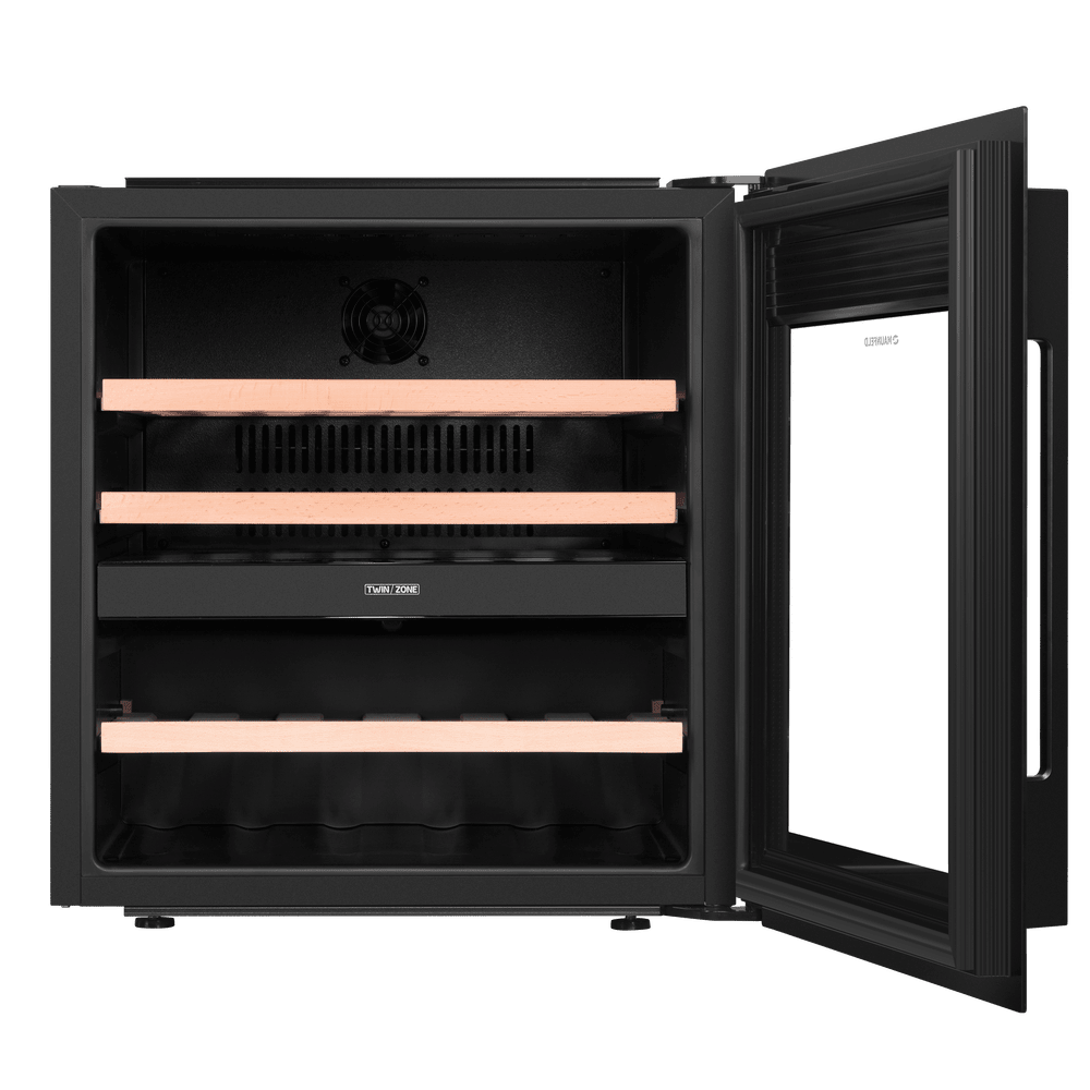 Винный холодильник Maunfeld MBWC-92DM36 имеет две температурные зоны, в которых одновременно можно хранить разные сорта алкоголя и выставлять разные сочетания настроек. Он встраивается в нишу, что удобно, если у вас ограничен метраж помещения. Благодаря компактным размерам данная модель — отличный выбор для офиса, гостиничного номера. Количество бутылок, которое можно разместить с учетом полной комплектации и из расчета объема бутылки 0,75 л, — 36 шт.