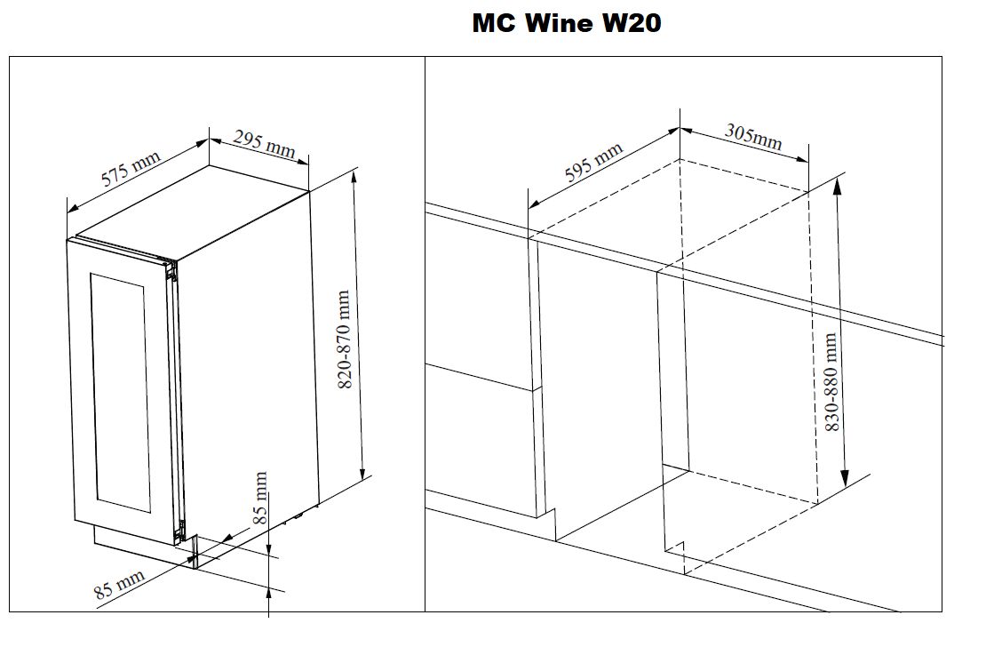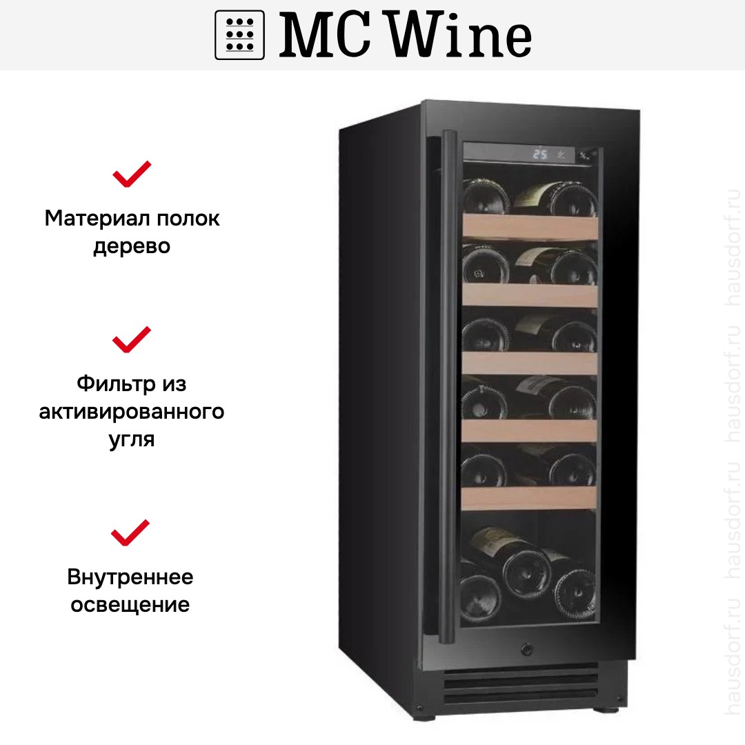 Винный холодильник MC Wine W20B имеет одну температурную зону, в которой можно разместить бутылки и единовременно выставить только одну комбинацию настроек. Он устанавливается отдельно, что удобно, если у вас есть специальное помещение — кладовая, погреб и т.д. Благодаря компактным размерам данная модель — отличный выбор для офиса, гостиничного номера. Количество бутылок, которое можно разместить с учетом полной комплектации и из расчета объема бутылки 0,75 л, — 20 шт.